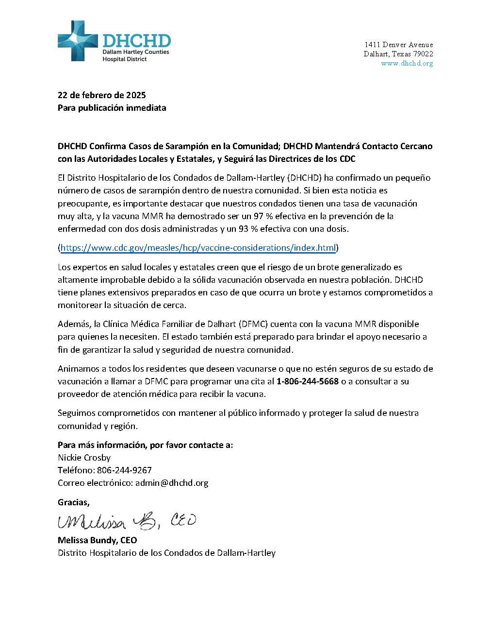 22/02/2025 DHCHD Confirma Casos De Sarampion en la Comunidad